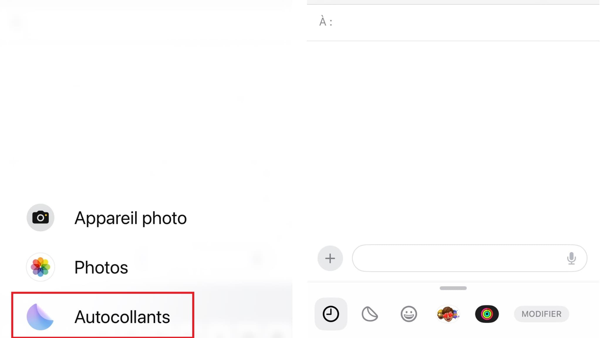 - Sélectionnez "Autocollants" et sélectionnez l'autocollant créé pour l'insérer dans votre SMS