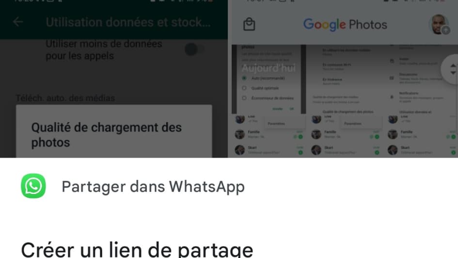 Certains services permettent d'envoyer des contenus photos et vidéos sur WhatsApp en fournissant simplement un lien à votre interlocuteur. C'est notamment le cas de l'application Google Photos.