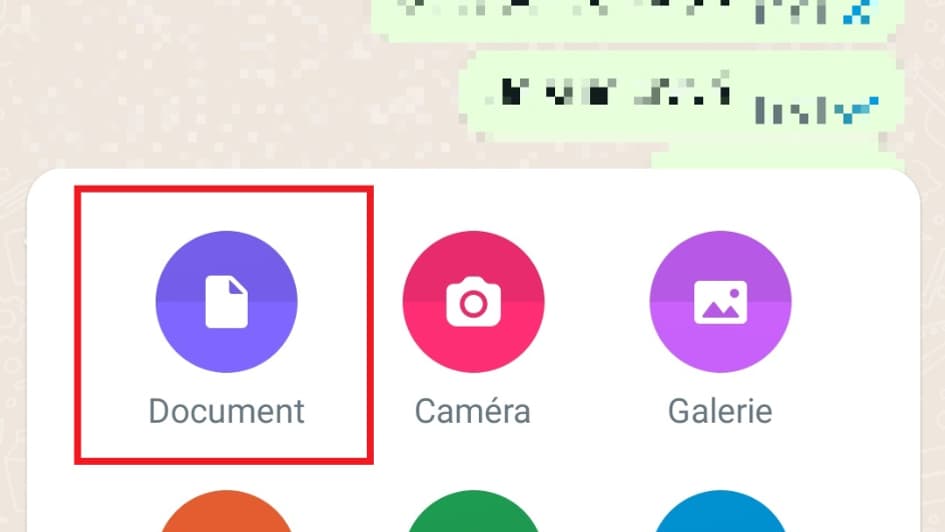 Expédier des images et des vidéos non compressées est possible si vous les transmettez sous forme de document. Pour cela, vous devez choisir "Document" au lieu de "Galerie" après avoir cliqué sur l'icône de pièce jointe dans la fenêtre de discussion.