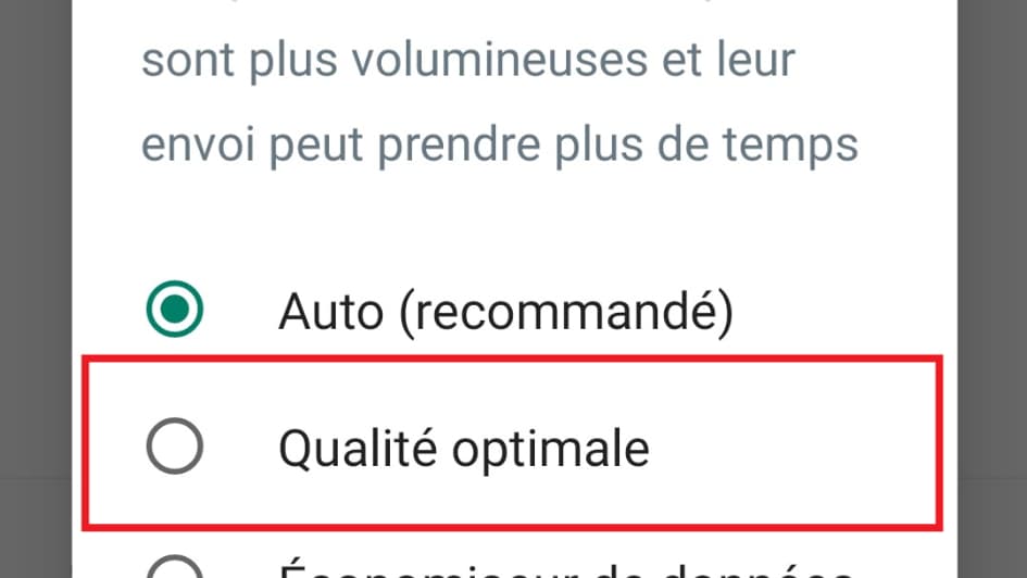 Attention: si les photos envoyées sont de meilleure qualité en activant cette option, elles sont également plus longues à charger et consomment plus de data et d’espace de stockage.