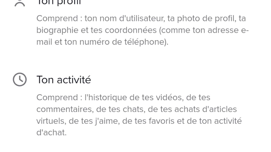 Pour prendre connaissance de ce que TikTok détient sur lui, chaque utilisateur peut demander au réseau social une copie de ses données personnelles qu'il est possible de télécharger depuis l'application.